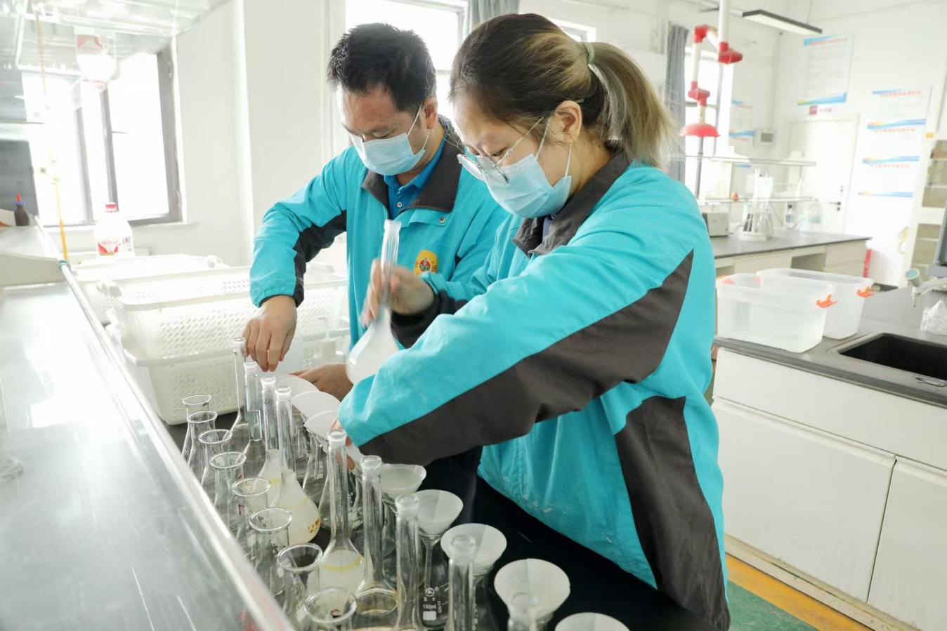 新疆台沃肥业科技有限公司工作人员正在对产品成分进行检测。李韦钰 摄