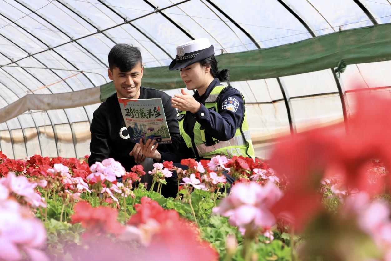 3月16日,温宿县公安局创新宣传模式,将交通安全课堂从会议室搬进了绿意盎然的蔬菜大棚,用一声声带着泥土味的乡音,为正在劳作的村民们送上了一份“平安种子”。
