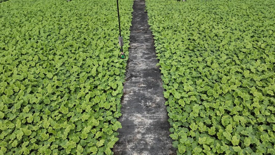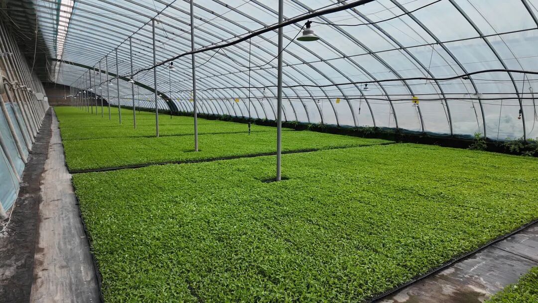 棚内的每一处细节,都藏着对种苗生长的用心:棚顶悬挂的暖灯随时待命,整齐排布的喷灌设施如琴弦般延伸,育苗专用水源单独铺设管线。科学的布局、精细的照料,既为种苗生长提供了最优环境,也为后续移栽定植做好了充分准备。
