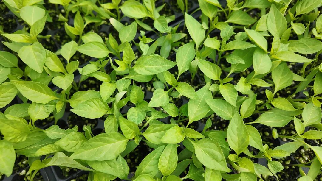 辣椒苗长势旺盛,嫩绿的叶片舒展饱满。胡彩艳 摄