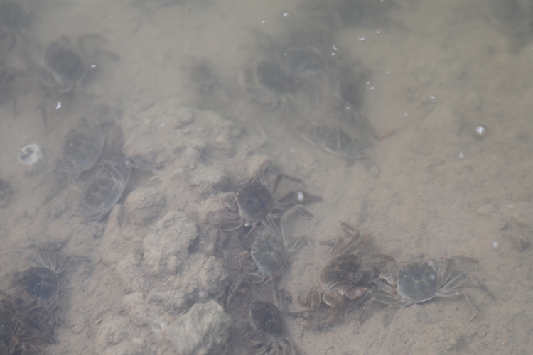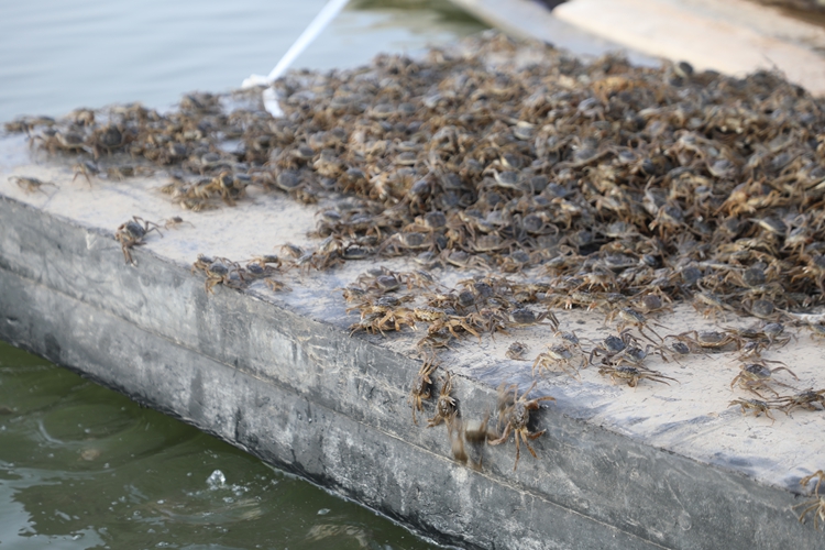 中华绒螯蟹蟹苗投放现场。朱克峰摄
