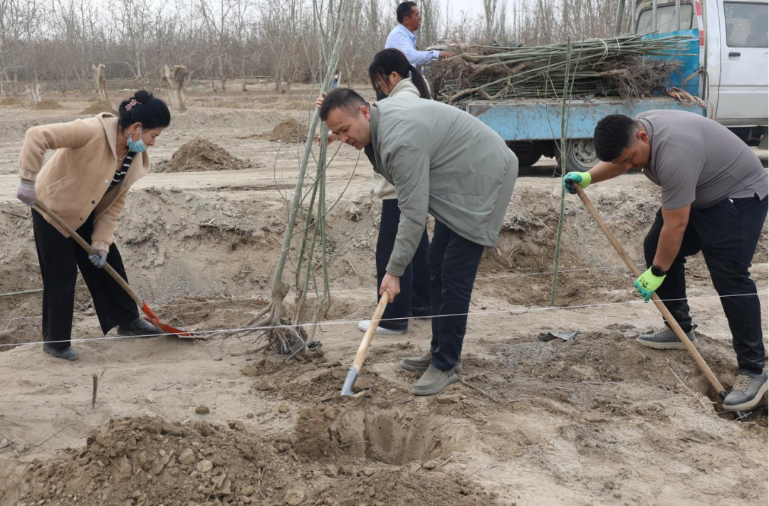 春风拂沃野,植绿正当时。3月24日,新和县塔什艾日克镇抢抓春季造林黄金节点,积极响应全县“三北”工程攻坚战暨塔克拉玛干沙漠边缘阻击战工作部署,组织全镇干部群众开展以“植绿护绿爱绿 共建和美乡村”为主题的春季植树造林活动,以实际行动践行“绿水青山就是金山银山”的发展理念,为建设和美乡村厚植生态底色,更在并肩劳作中深化各族干部群众情谊,推动民族团结之花在植绿护绿实践中绽放。