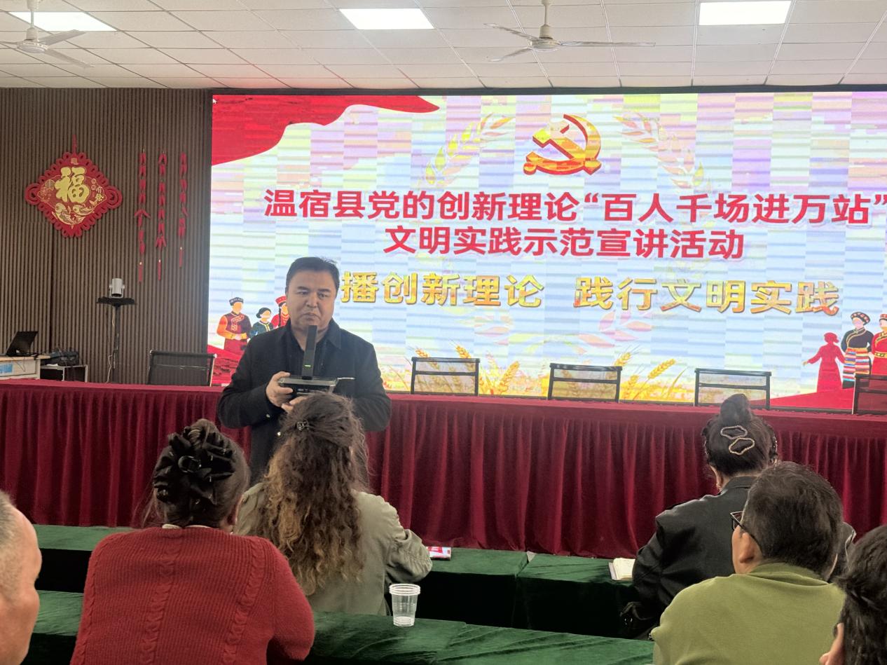 春风送暖,理论润心。连日来,温宿县深入开展党的创新理论“百人千场进万站”文明实践示范宣讲活动,依托全县新时代文明实践中心(所、站)三级阵地,将理论宣讲与全国“两会”精神、国旗下大宣讲、文明实践活动深度融合,用群众听得懂、能领会的语言,把党的好声音送到群众心坎上,推动文明实践宣讲走深走实、入脑入心。