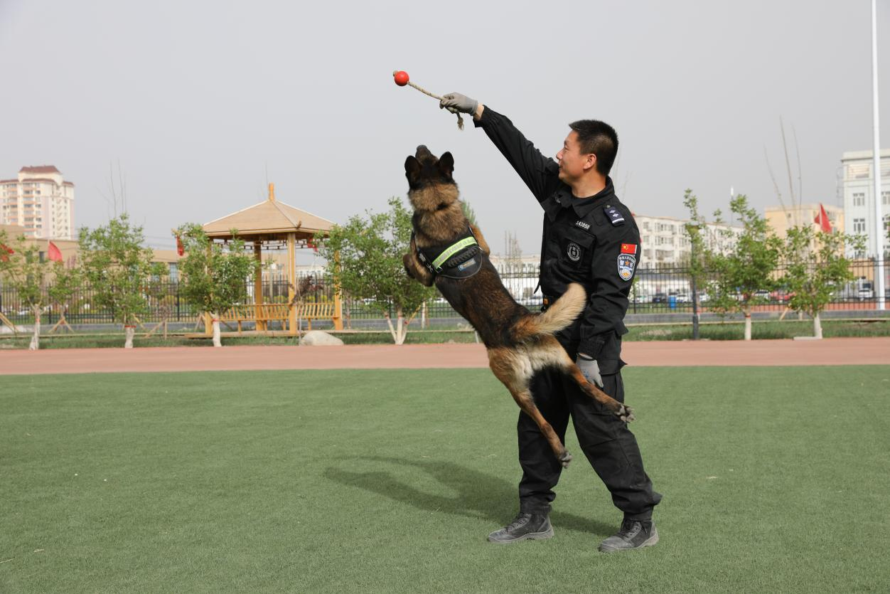书本是他的理论老师,训练场是他的实践课堂。从此,无论盛夏烈日当空,地表温度灼人,还是严冬呵气成霜,寒风刺骨,训练场上总能看到他与警犬并肩奔跑的身影。一个简单的“坐”“卧”“立”指令,为了让警犬形成牢固的条件反射,他需要重复成百上千次。嗓子喊哑了,就用肢体语言替代;手和胳膊被警犬无意抓伤、碰伤,留下一道道疤痕,他从不计较,反而笑称这是“无声的勋章”。