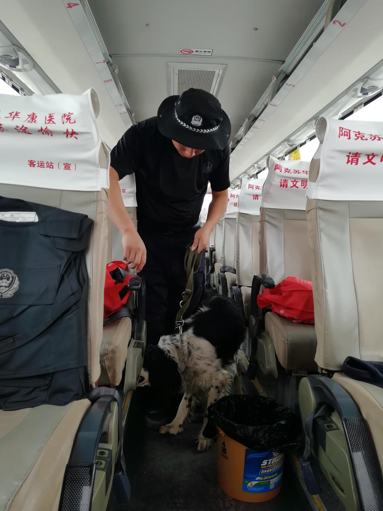 温宿县公安局民刑事侦查大队警犬所民警朱永亮带着警犬在执行任务(刘新梅 摄)
