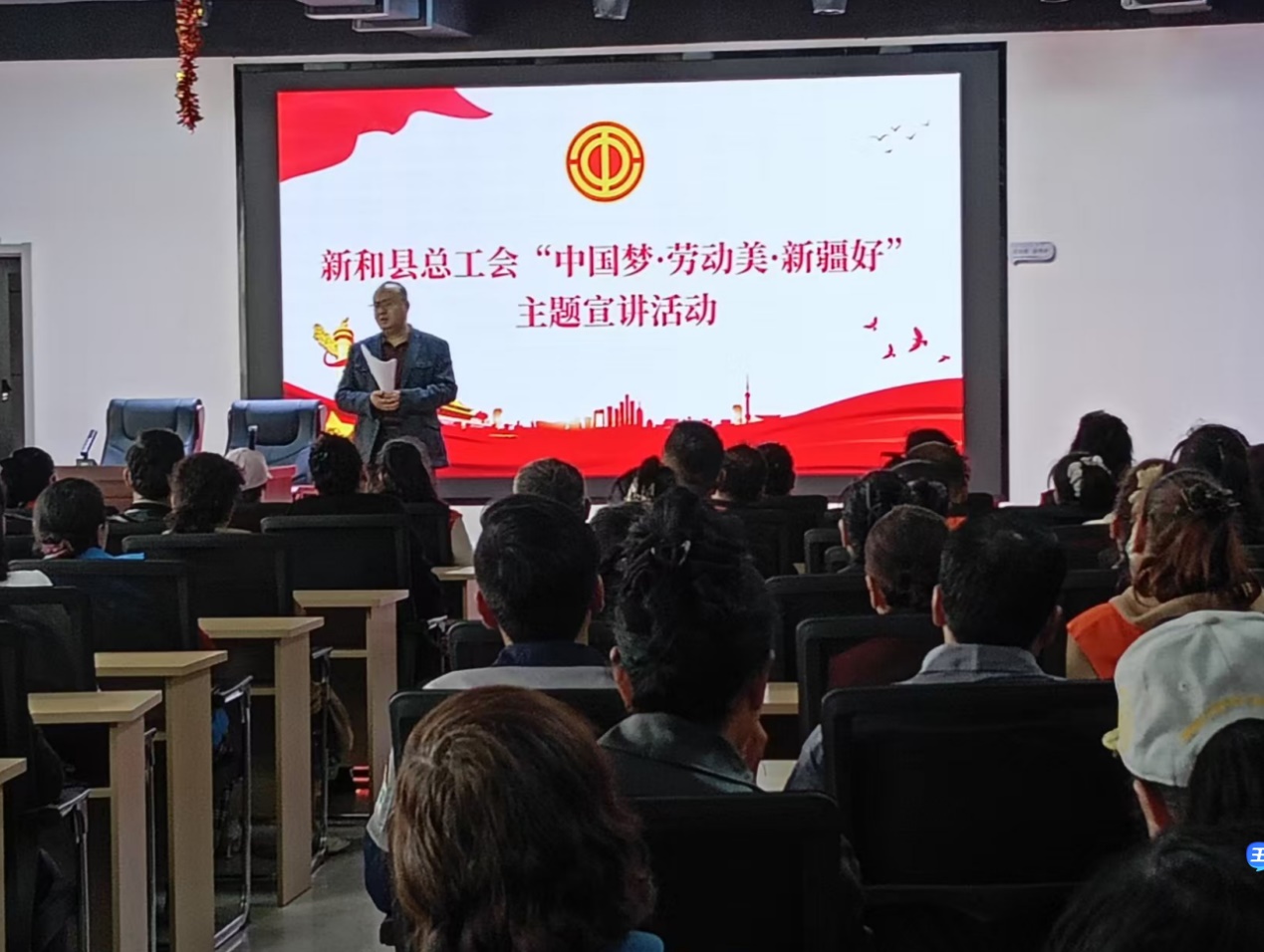 为深入贯彻落实党的二十届四中全会精神,3月30日,新和县总工会开展了“中国梦·劳动美·新疆好”主题宣讲活动,旨在凝聚广大职工思想、弘扬劳动精神,进一步铸牢中华民族共同体意识。来自辖区新疆益康集团有限公司、启迪环卫科技有限公司新和分公司、新和县渝江商品混凝土有限公司、新和县新和镇班超社区等50家企事业单位的250余名职工代表现场聆听了宣讲。