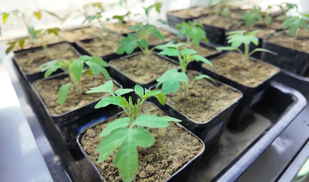 嫩绿的叶片、细密的绒毛,一株株番茄幼苗在实验室里扎根生长。胡彩艳 摄