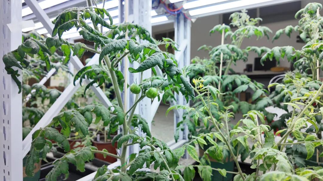 塔里木大学实验室里,进入挂果期的番茄。胡彩艳 摄