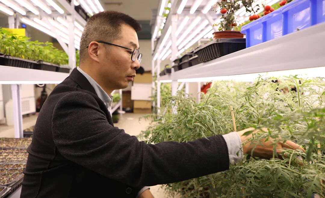 塔里木大学园艺与林学学院副教授胡楠在实验室观察番茄种苗生长情况。段磊 摄