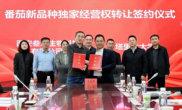 3月18日,塔里木大学与西安叁友生物科技有限公司签订“塔大新番1号”“塔大新番2号”番茄新品种独家经营权转让协议,金额500万元,刷新学校果蔬领域科技成果转化纪录。这场校企合作,打破科研与产业壁垒,让良种走出实验室、迈向全国大市场。这也是塔里木大学扎根南疆六十余载,把科研论文写在沙漠戈壁、把技术成果落到田间地头的真实写照。
