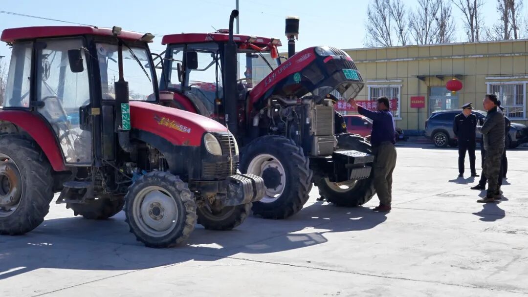 在沙湾市大泉乡农机检验点,一台台拖拉机整齐排列。工作人员严格按照技术标准,逐台检查转向、制动、防护装置及机身外观,并核对牌证信息。对合格农机予以检验,对存在隐患的农机提出整改意见,督促及时维修。检验过程中,工作人员还现场讲解了农机安全操作规程及日常保养常识。