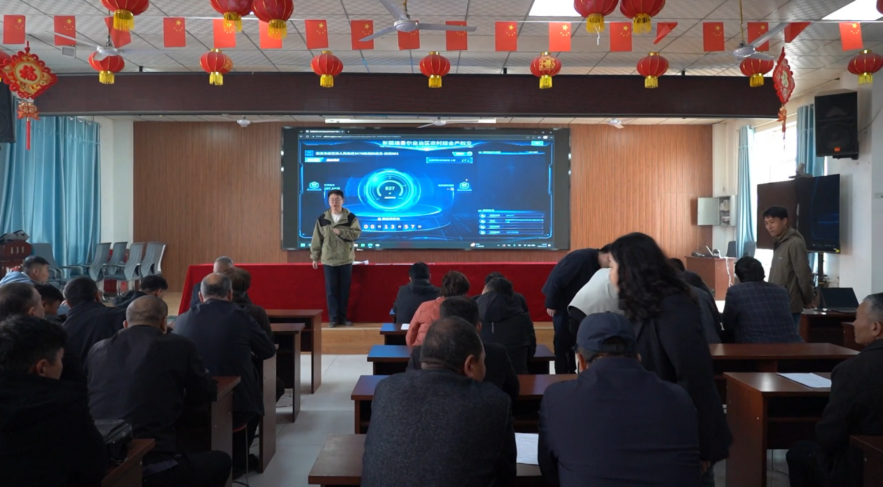 温宿县稻花镇人民政府 3470 株杨树出售项目在温宿县农交中心线上竞拍大厅圆满落槌。(阿依努尔 摄)
