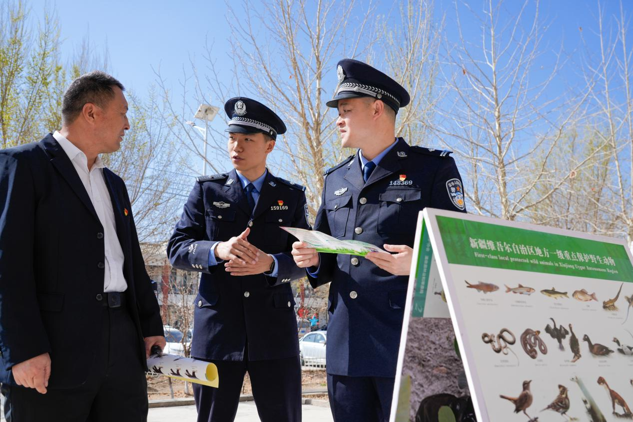 今年以来,温宿县公安局主动将公安工作融入全县绿色发展大局,锚定“柯柯牙生态”警务工作重点,全力推动生态警务向专业化、特色化、区域化、数字化与可视化转型升级。始终坚持“党建红”引领“警察蓝”,将党性教育贯穿生态警务始终,落实“谁执法、谁普法”责任制,提升民警以案释法能力。同时,组织宣传队伍深入村组、校园、社区普及环保法规,利用广播、电视、微信公众号、短视频平台等融媒体矩阵,常态化宣传保护野生动植物、防范森林火灾等知识,营造全民参与生态保护的良好氛围。