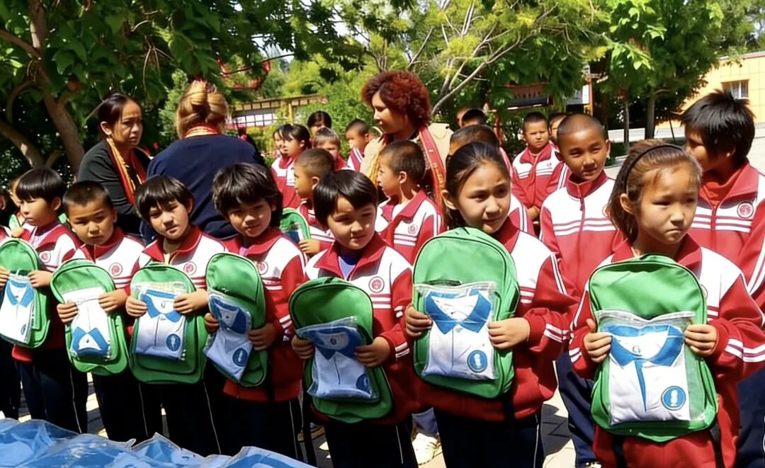 热尼娅·加拉力带领“爱心妈妈”团队为困难儿童送上新书包