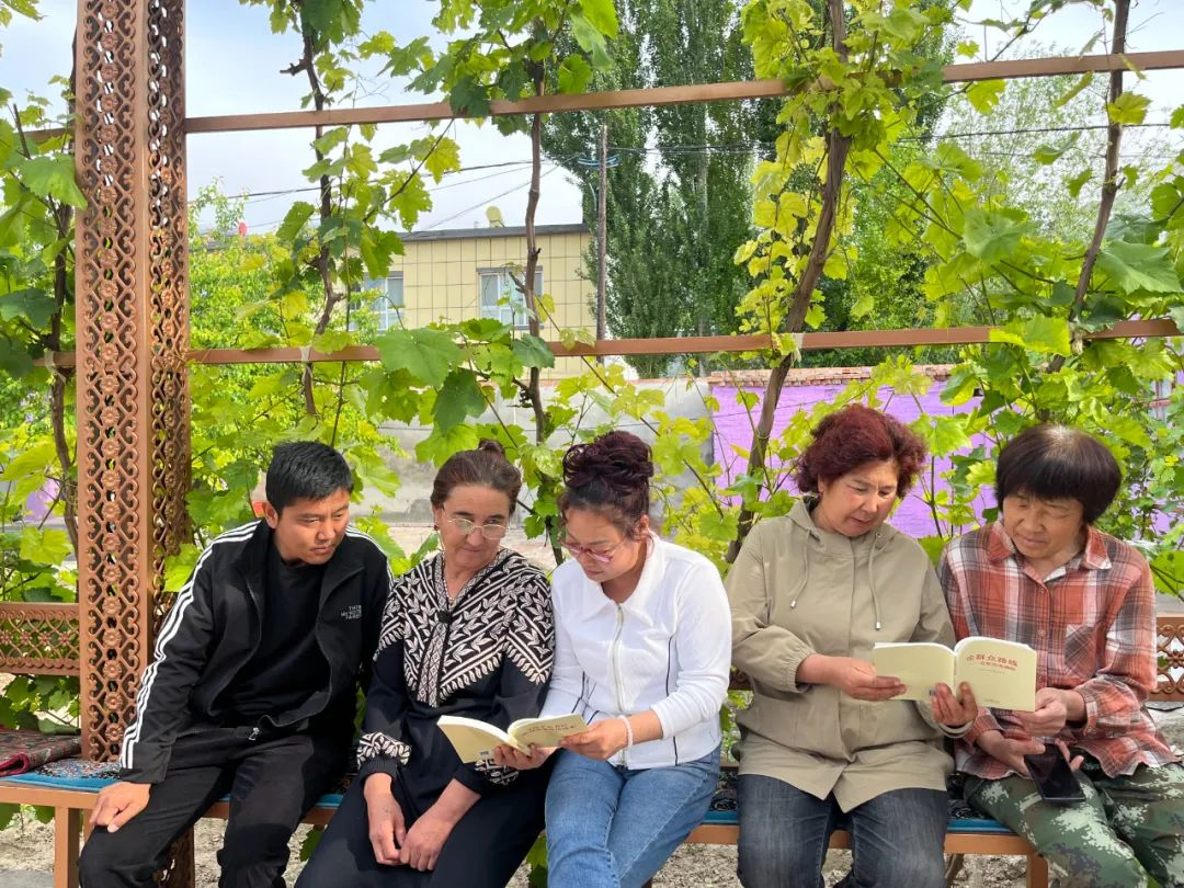 她还在“读书角”组织丰富多彩的活动:邀请老军人、老干部讲述红色故事,在孩子们心中播下爱国的种子;组织妇女群众学习《中华人民共和国民法典》《中华人民共和国妇女权益保障法》等法律法规,通过讲解法律知识,帮助大家提升法治意识和维权意识。这间小小的文化大院,已成为集文化书屋、矛盾调解、妇女维权、民族团结示范点为一体的多功能平台。各族居民一起学习、交流,心与心越来越近。