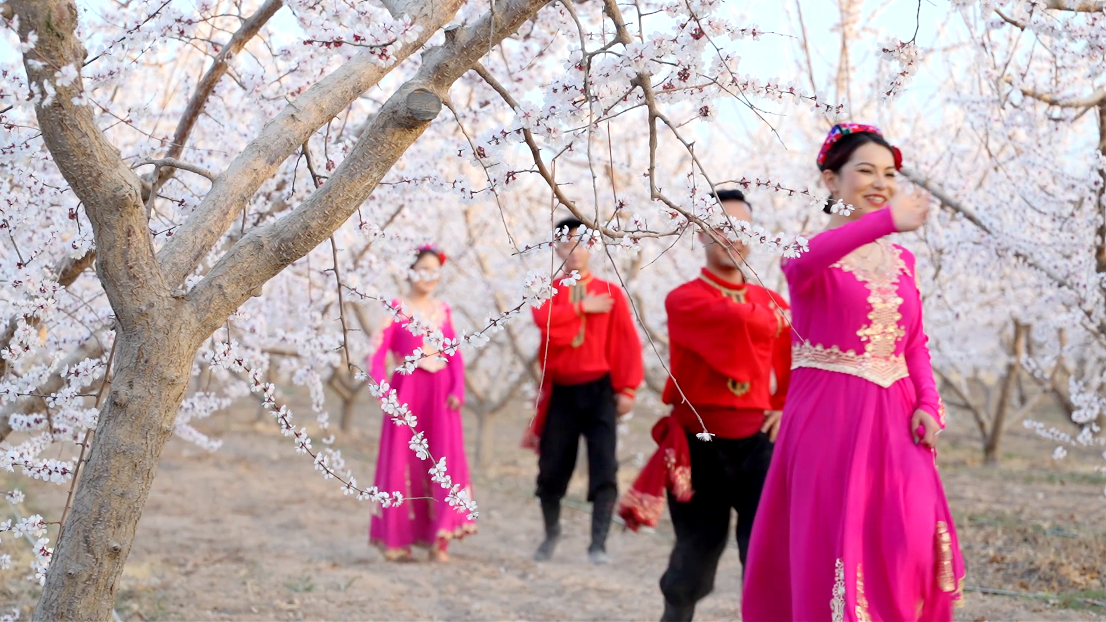 “这片千亩杏花就是温宿春天最美的图画。”来自阿克苏市的游客朱生兴笑着说,“每年我们都要来。今天阳光明媚,大家赏花、拍抖音、唱歌跳舞,玩得特别开心。”支女士也兴奋地说:“春天来了,这么多美丽的杏花,我们一群‘美丽姑娘’在树下拍照拍抖音,要把最美的一面展现出去,特别放松、开心。”