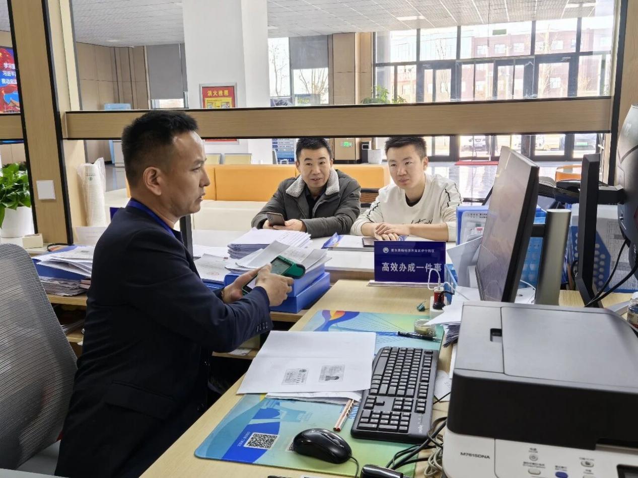(伊宁园区政务服务大厅工作人员正在办理业务)