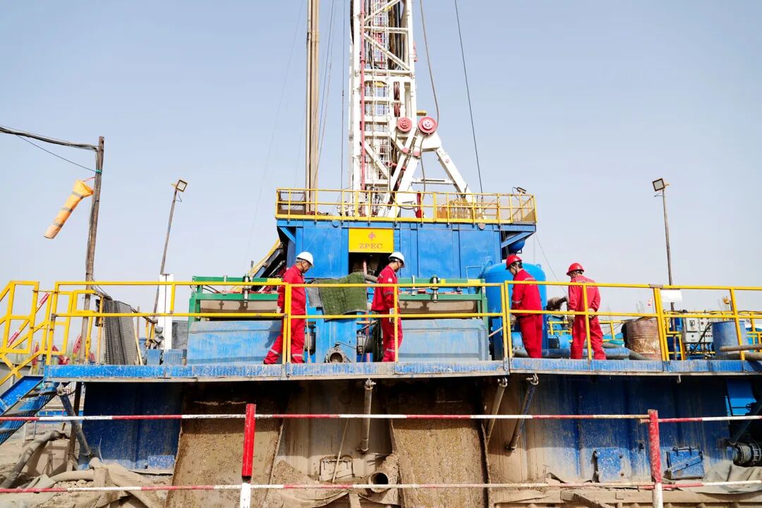 中曼温北油田温13井场,工作人员在进行钻井作业 赵新昌 摄