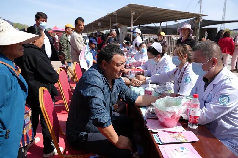 县卫健委组织多家医疗机构医护人员,设立免费义诊台,为群众提供血压测量、血糖检测、中医养生、常见病诊疗等服务,耐心解答健康咨询,普及合理膳食、传染病防治、急救常识等知识。针对老年人、儿童等重点群体,开展健康宣教,发放常用药品与健康手册,打通卫生服务群众“最后一公里”,切实守护各族群众身体健康。